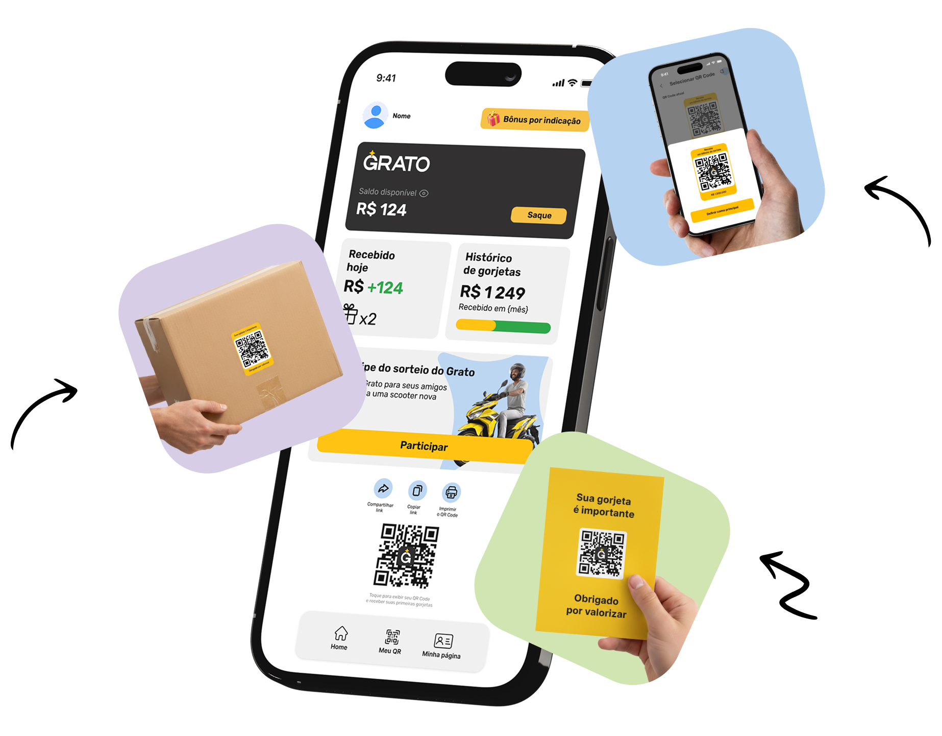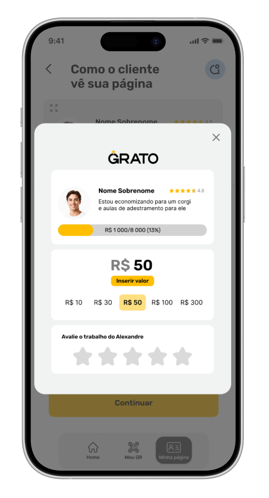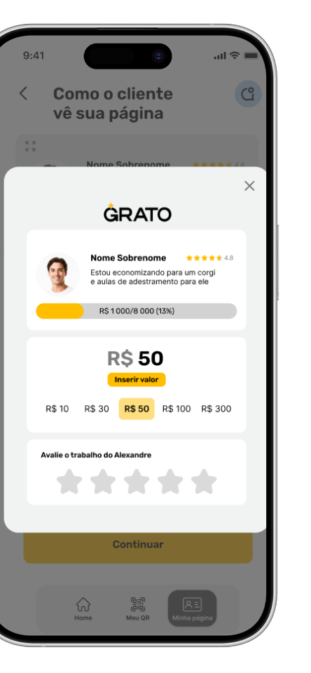 O cliente escaneia o QR Code e vê para qual sonho você está juntando.