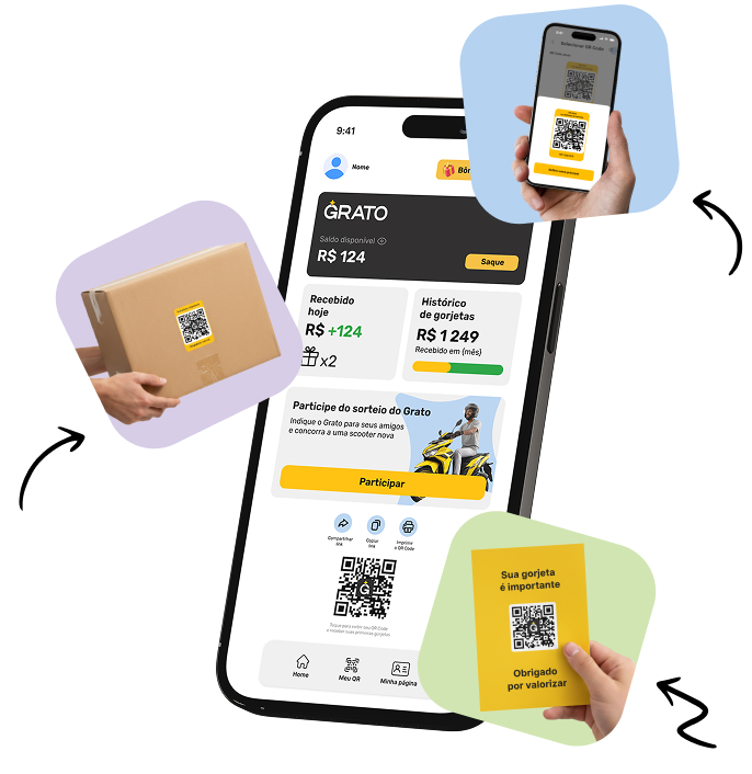 As doações caem na sua carteira GRATO e aparecem no seu painel.